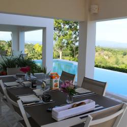 De par sa position sur la colline, la villa bénéficie en permanence d'une agréable brise qui permet de supporter toutes les températures et dispense aisément de l'air conditionné.