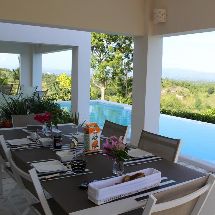 La villa est située sur le sommet d'une colline dominant le village de Rio San Juan. Elle jouit d'une vue époustouflante, sans vis-à-vis, sur 180°, avec à perte de vue la mer et la montagne, d'où son nom "La Puntilla".